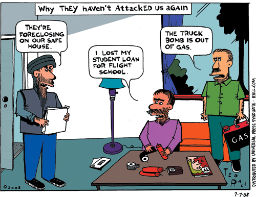 Why they haven’t attacked US again… July 9, 2008 sarcarstic terrorist attack us gaz loan @ Ted Rall